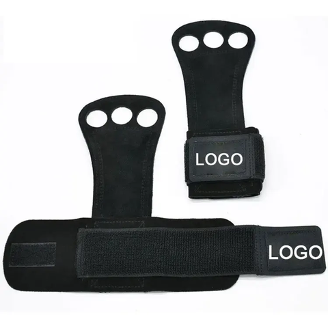 Logotipo personalizado Alta Qualidade 3 Buracos Couro Levantamento De Peso Apertos Treinamento Luvas De Levantamento De Peso Pesado